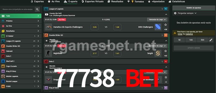 O 77738 Bet oferece uma grande seleção de opções de apostas em e-sports com probabilidades competitivas